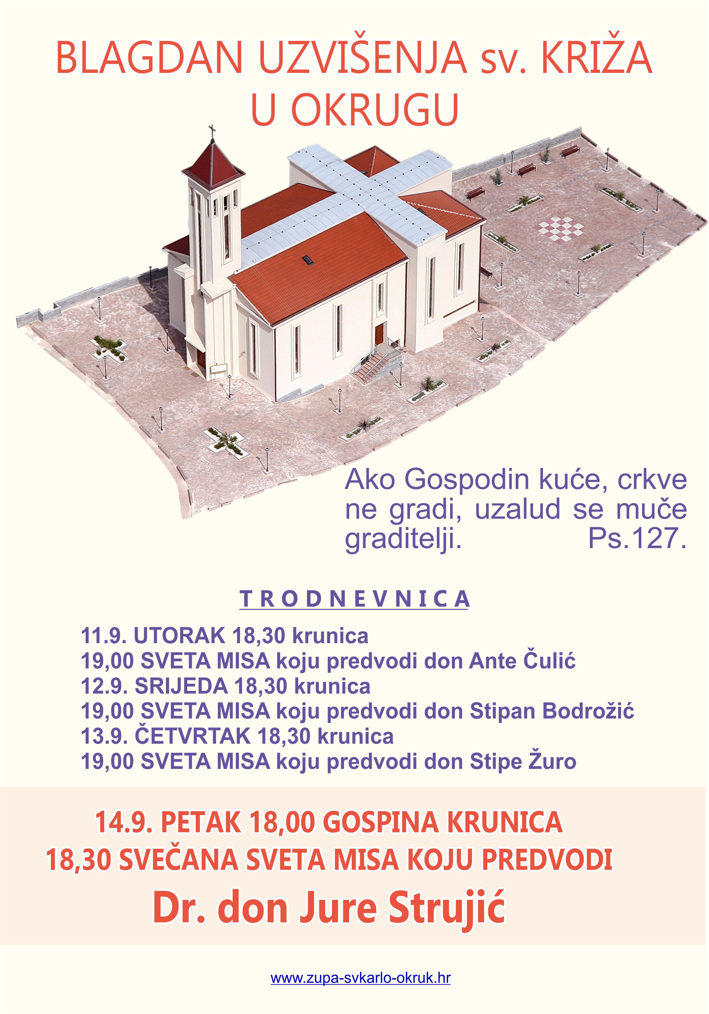 17,00 SATI – svetište Gospe od Prizidnice – crkva u Prizidnicama.